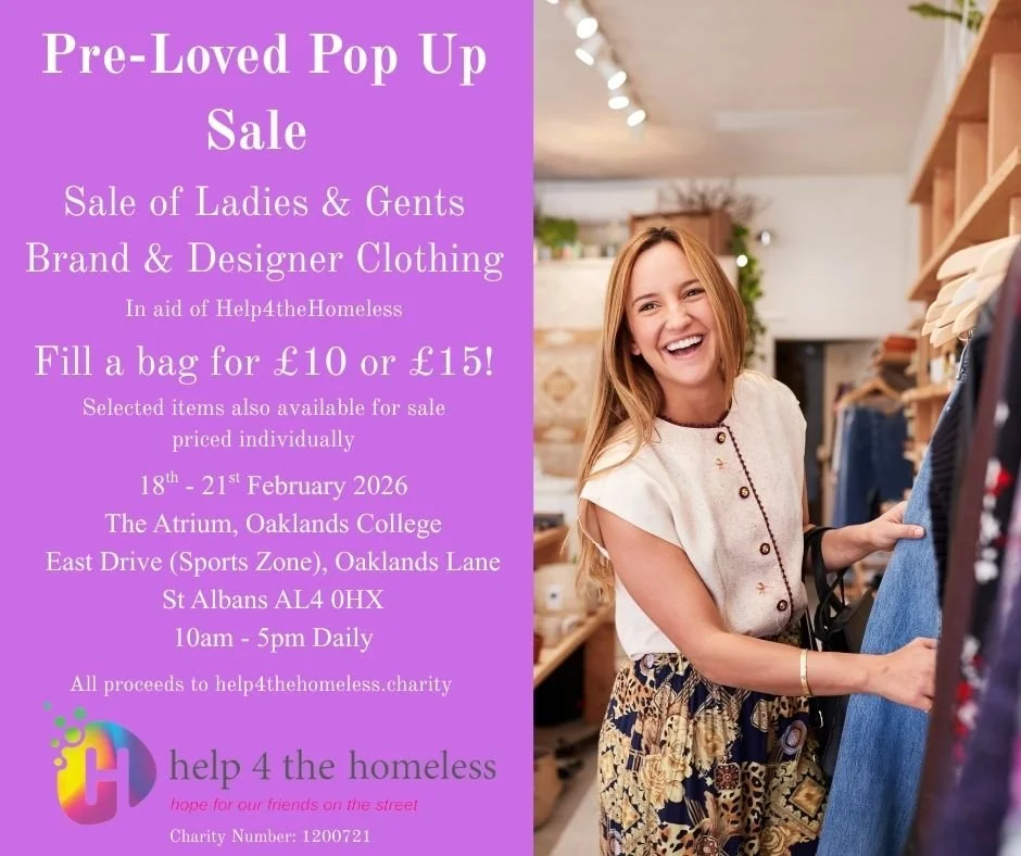 Events POP UP SHOP “2” Wednesday 18th - Saturday 21st February Raising funds for Help 4 the Homeless helps raise the life possibilities for people on the streets. Join Us Contact Us